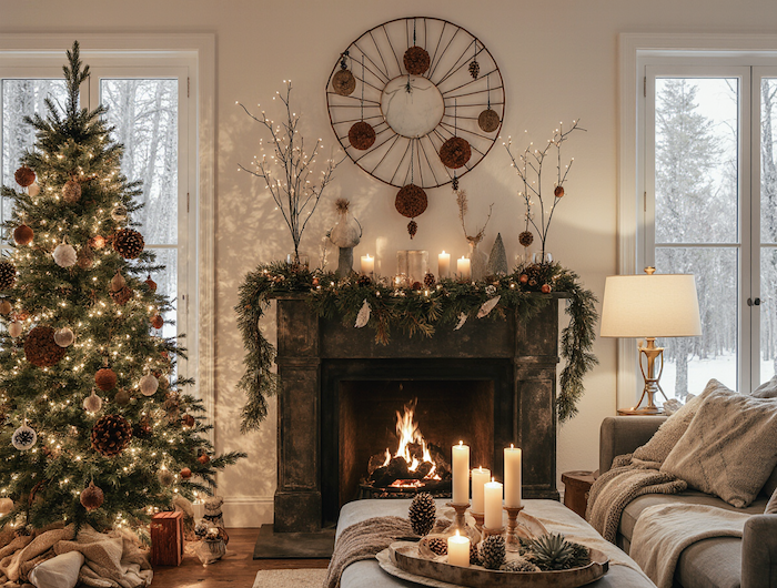 Как применить: выберите одну-две зоны для акцента: например, каминную полку и обеденный стол. Украсьте их продуманно и со вкусом, используя принципы, описанные выше. Не нужно вешать гирлянды на все окна и расставлять фигурки на каждой полке. Пусть красота будет дозированной, а пространство — дышащим. Элегантная ель с 20 идеально подобранными шарами смотрится дороже и стильнее, чем дерево, заваленное тоннами блестящей мишуры.
